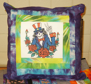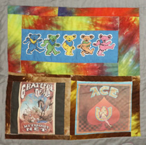 Lovingly crafted by Larry's mother Jean, with computer print-outs by Larry's sister Laurie and fabric dyed by Terrapin Tie Dyes. All photos taken at the Burlington Record and Memorabilia (and Tie Dye!) Sale. Eternal thanks to the Grateful Dead, and to the continued memory of Jerry. ![]() "What A Long Strange Trip Its's Been" |
